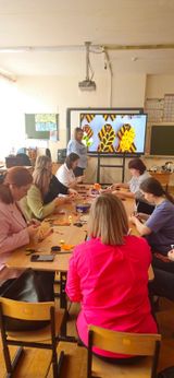 Пока наши ребята готовились к открытию фестиваля, в это время советник директора по воспитанию Васильева Марина Валерьевна посетила мастер-класс по изготовлению броши к 9 мая, который провела советник Нововилговской школы Анастасия Шамонтьева .
