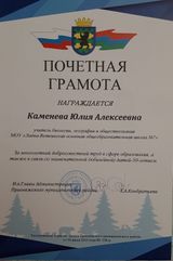 В начале учебного года были награждены Почётной грамотой от Администрации Прионежского района за многолетний добросовестный труд в сфере образования Каменева Юлия Алексеевна и Кондроева Татьяна Николаевна.