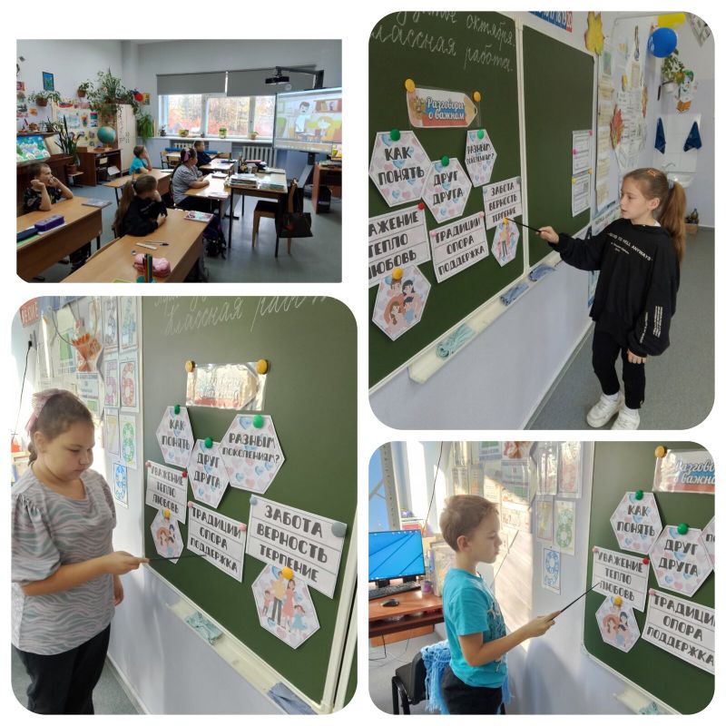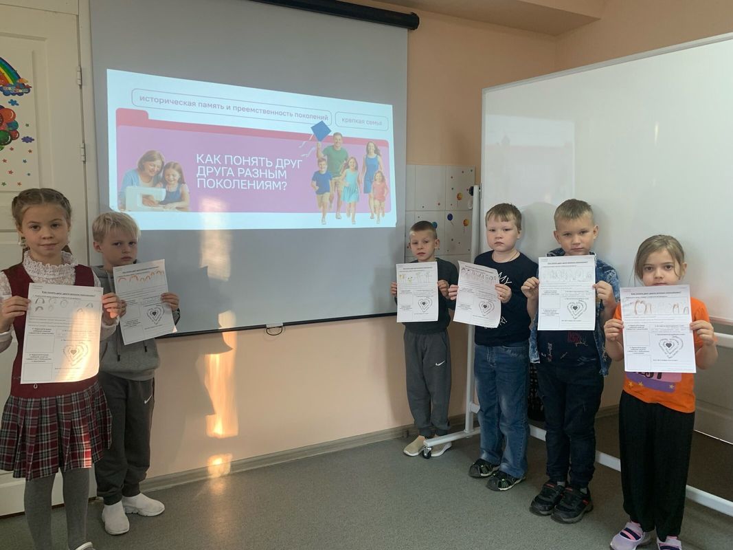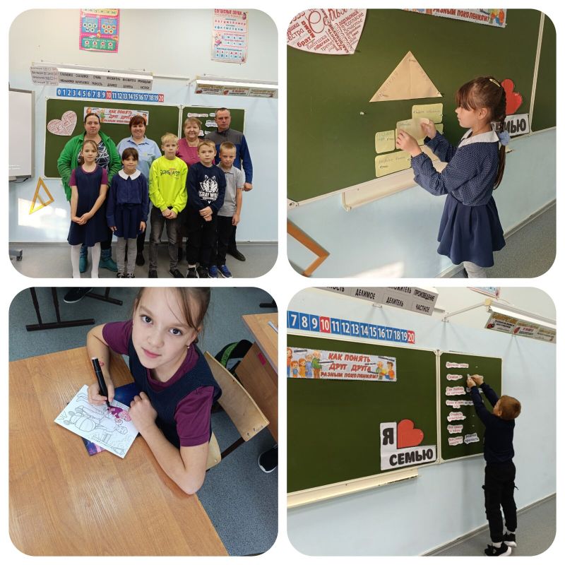 1–4 классы: Ребята рассуждали о том, что такое семья, рассказывали о своих близких и семейных традициях. А просмотр фрагмента мультфильма «Трое из Простоквашино» помог понять, как важно слушать и слышать друг друга.