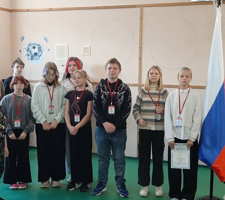 Право внести государственный флаг предоставили победителям школьного этапа Всероссийской олимпиады школьников по физической культуре среди 7-8 классов Емельяновой Марии и Старухину Савелию, победителю по истории среди 7-8 классов Мостовой Виолетте.