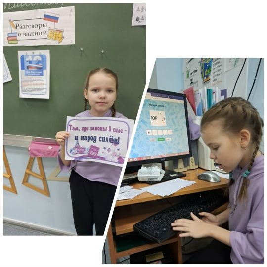 После линейки для всех классов прошло очередное занятие из цикла «Разговоры о важном», приуроченное ко Дню Конституции РФ. Тема занятия — «Закон и справедливость».