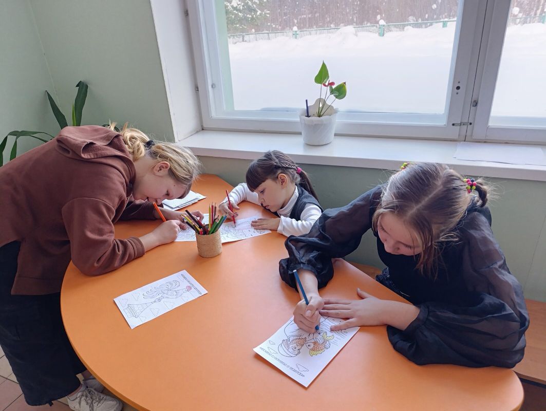 Для всех желающих: В коридоре работала большая творческая станция от советника директора по воспитанию Марины Валерьевны Васильевой. Здесь каждый мог найти занятие по душе: