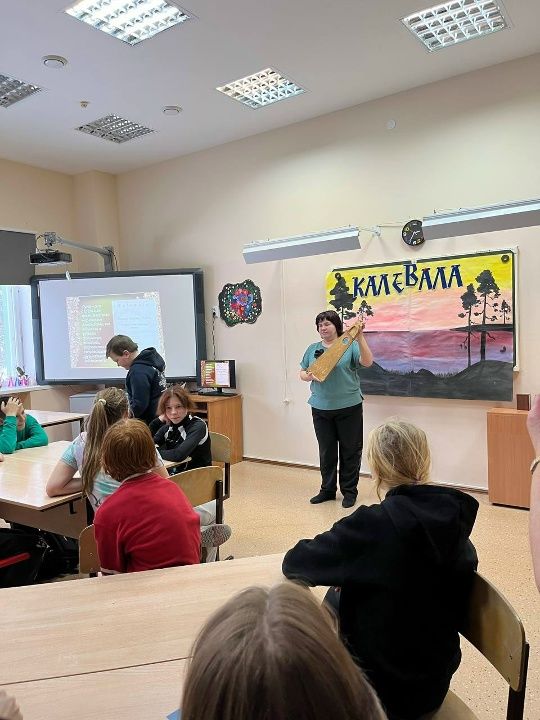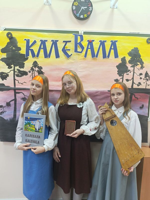 В преддверии Дня «Калевалы», который отмечается 28 февраля советник директора по воспитанию Марина Валерьевна Васильева и руководитель педагогического класса Нина Васильевна Афонина организовали для ребят увлекательную игру-путешествие «По дорогам Калевалы» по мотивам знаменитого эпоса. А провели это приключение наши замечательные ведущие: Мостовая Виолетта, Девятень Дарья, Шелемова Мария и Старухин Савелий!