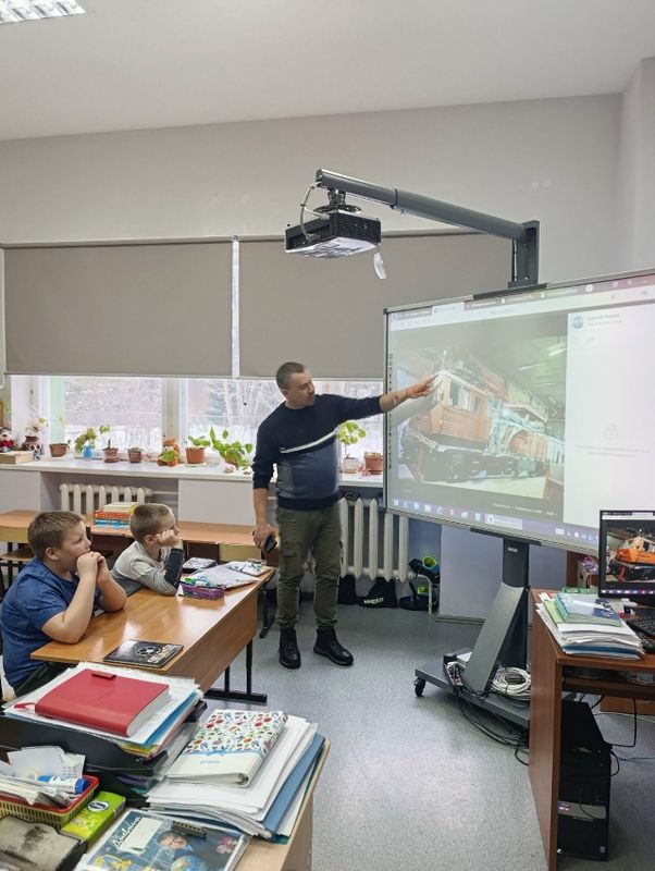 К ним в гости пришёл Фёклов Алексей Юрьевич, папа ученицы из 4 класса. Алексей Юрьевич работает машинистом автомотрисы. Это очень ответственная и важная профессия, связанная с железной дорогой.