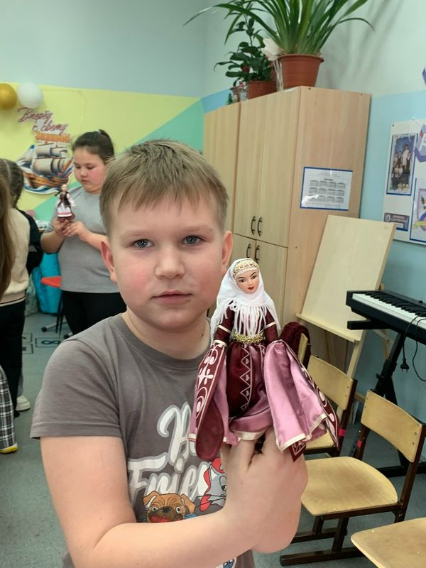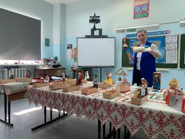 Валентина Николаевна к нам приехала не одна, а со своей коллекцией кукол в национальных костюмах нашей страны и ближнего зарубежья.