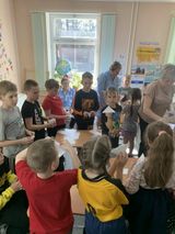 На кружке изобразительного искусства ребята вместе с Ольгой Владимировной Захаровой изготовили птиц из бумажных тарелок.
