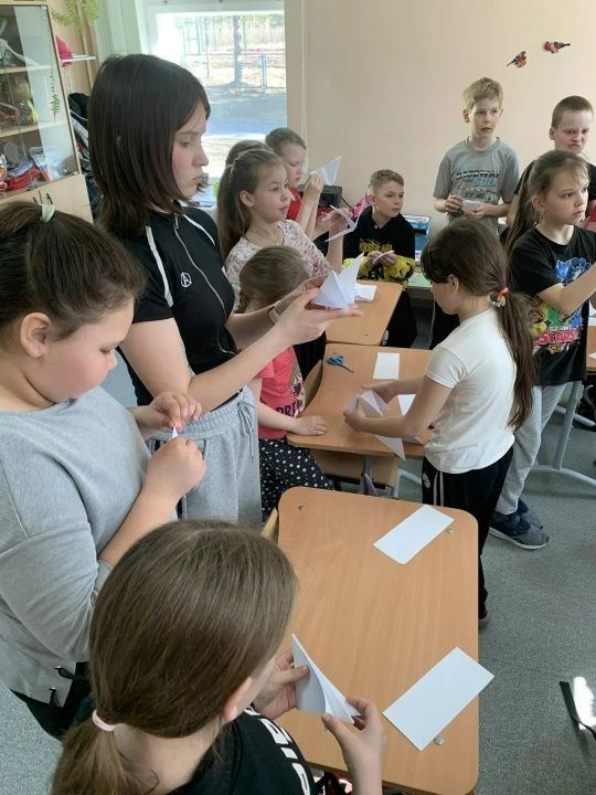 Мастер-класс «Оригами». На одной из перемен учащиеся начальной школы под руководством педагога-организатора Елены Евгеньевны Кайгородовой учились складывать бумажных птичек. Теперь у многих в дневниках живут бумажные птички.