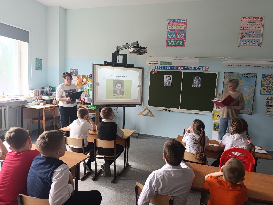 Педагог-организатор Елена Евгеньевна Кайгородова и заместитель директора по воспитательной части Наталья Владимировна Ефимова увлекательно рассказали ребятам о жизни и творчестве этих удивительных женщин. А ребята вместе с педагогами Людмилой Ивановной Дураковой, Тамарой Николаевной Ореховой и библиотекарем Светланой Ильиничной Мурашевой прочитали любимые стихотворения.