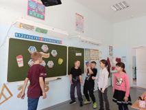 На переменах скучать тоже не приходилось: учитель физкультуры Надежда Кареновна Островко организовала настоящие «Спортивные перемены». Ребята с азартом разминались, играли в волейбол и просто весело двигались между уроками.