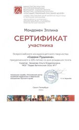 Поздравляем ученицу нашей школы Мондонен Эллину и педагогов - кураторов Захарову Ольгу Владимировну и Ковальскую Елену Сергеевну за участие в конкурсе